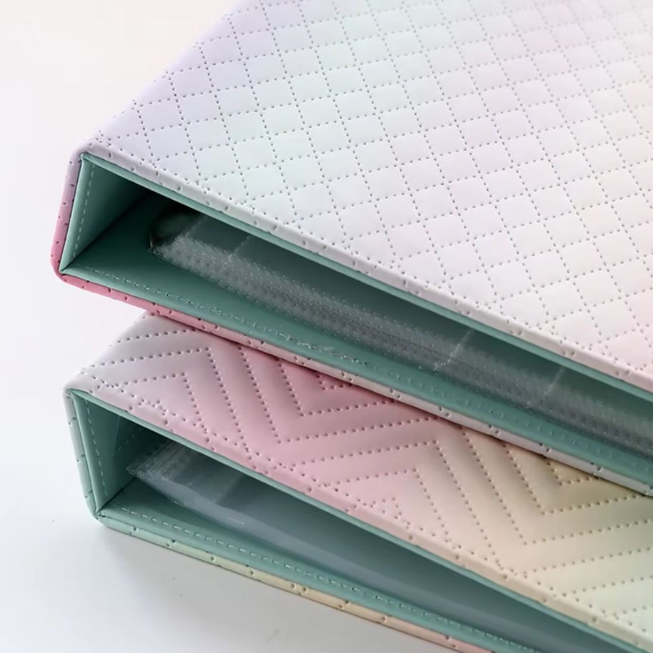 Capa de couro vegano premium e bolsos internos transparentes são modernos e duráveis. O fecho de laço de folha solta é resistente e seguro, mantendo as páginas do álbum no lugar, ao mesmo tempo que permite a adição ou remoção de páginas conforme necessário.