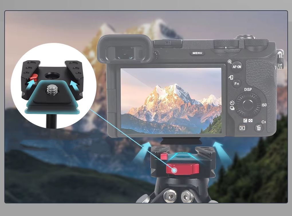 – Mecanismo de liberação rápida: apresenta um slot de liberação rápida para configuração rápida e transições entre diferentes configurações de filmagem.