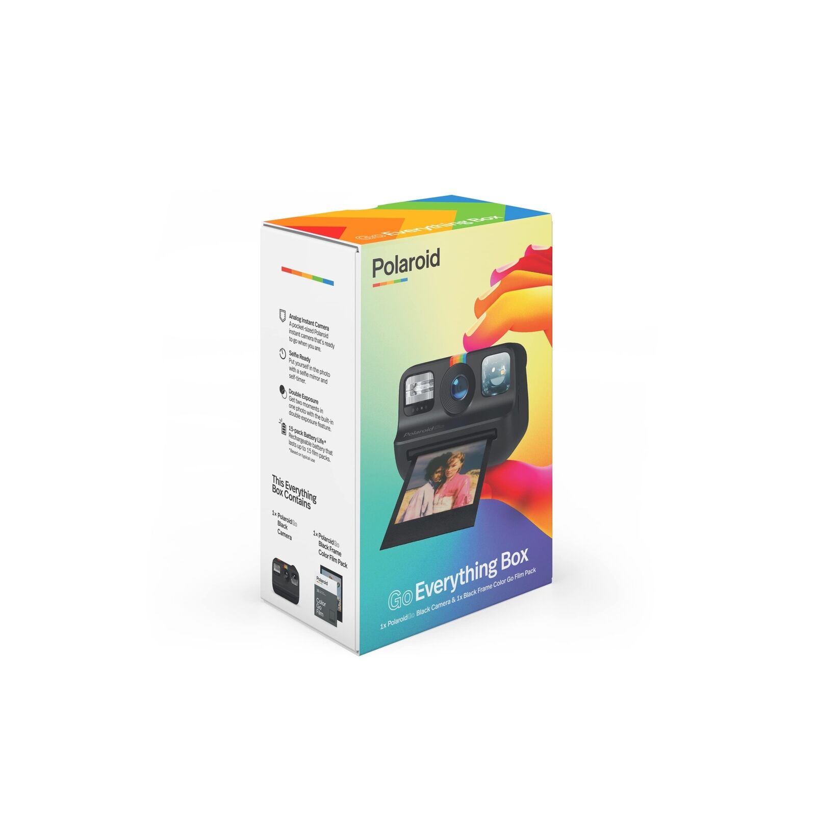 POLAROID GO CAMERA + GO FILM BUNDLE: A Polaroid Go Everything Box tem tudo o que você precisa para começar. O pacote inclui câmera Polaroid Go Black e um pacote duplo de filme Go color 16 fotos.