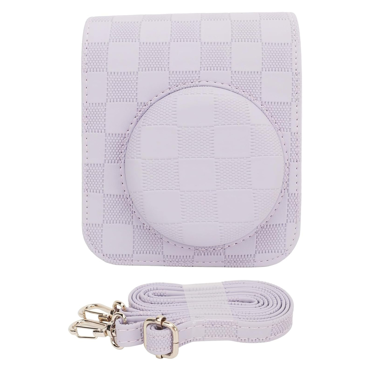 Feito de superfície de couro sintético premium com aparência especial em estilo xadrez, interior de microfibra superfino, este estojo para mini câmera instax parece bastante durável e oferece proteção total para sua câmera Fuji Mini 12 longe de arranhões, poeira, impactos e desgaste geral e rasgar