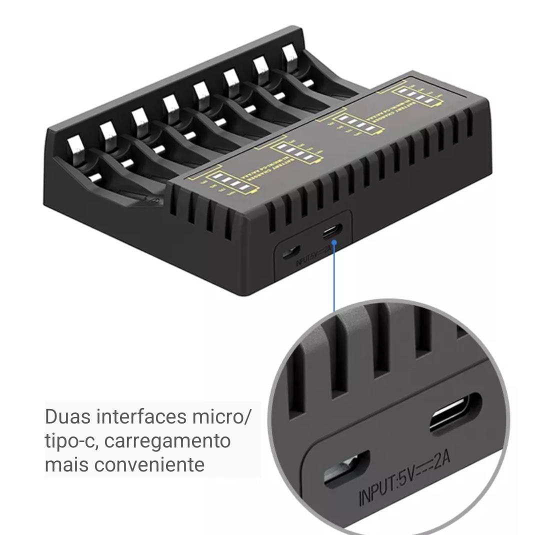 Carregador de bateria inteligente de 8 slots