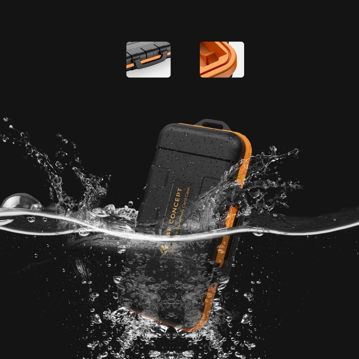 Usando revestimento ABS durável e forro de borracha termoplástica moldada, o estojo é projetado com conceito de tripla prova, vedação à prova de intempéries, evitando a entrada de água, poeira e detritos, protegendo a bateria da câmera e o cartão de memória contra danos.