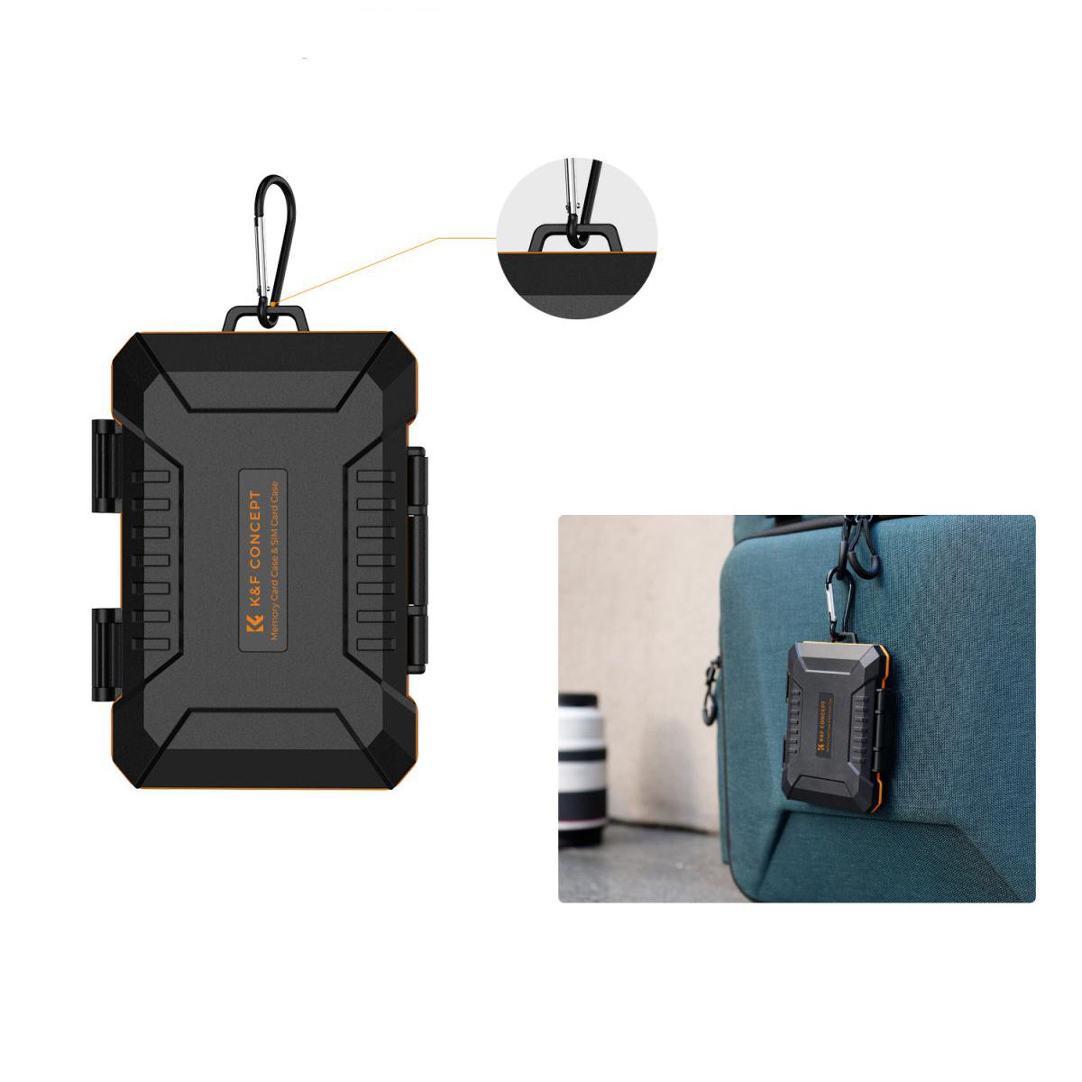 O sistema de travamento ergonômico permite fácil abertura e fechamento. Cada slot é estritamente personalizado para caber perfeitamente no cartão e na bateria. O fecho selado evita infiltração de água e fornece proteção total para sua bateria