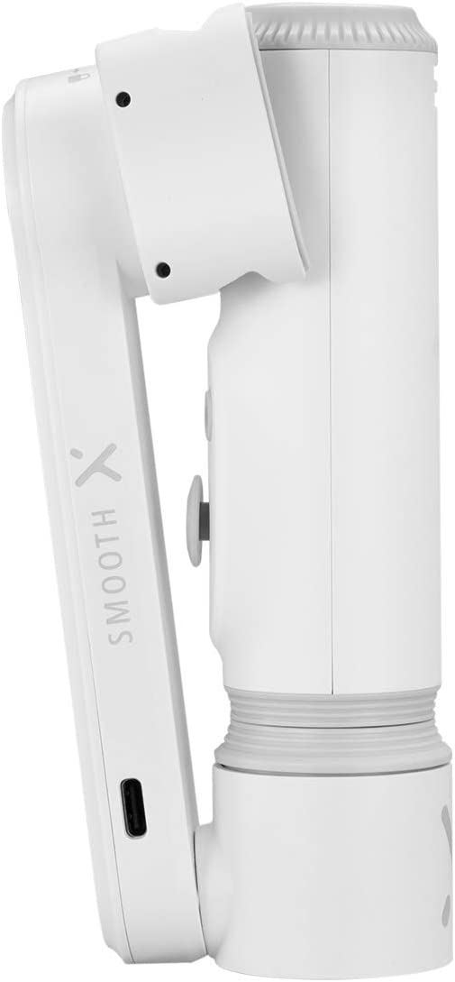 A barra telescópica se estende por aproximadamente 10 “, elevando o comprimento total estendido do SMOOTH-X para aproximadamente 20”. Quando a barra telescópica é retraída, o gimbal mede cerca de 10 “de ponta a ponta. Ele suporta telefones de até 3,5” por meio de uma montagem ajustável e permite posicionar o telefone horizontal ou verticalmente, para fotos padrão e retratos. Depois de conectar o telefone, a orientação pode ser facilmente alternada com o pressionar de um botão. Uma bateria incluída fornece 4 horas de autonomia média e até 5,5 horas em alguns aplicativos com standby.
