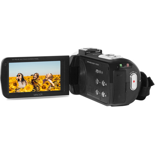 Capture vídeos vibrantes de 1080p durante o dia e imagens de visão noturna IR à noite com esta filmadora preta MN260NV Full HD IR Night Vision da Minolta. Com um sensor CMOS de 5 MP capaz de capturar vídeos Full HD e um zoom óptico de 16x, a MN260NV também pode capturar imagens estáticas de 30 MP no formato JPG. A câmera integra um LCD touchscreen IPS de 3″ articulado e oferece estabilização de imagem antivibração para captura de imagem suave e estável. A câmera compacta e prática grava em cartões SD com capacidade máxima de 128 GB.