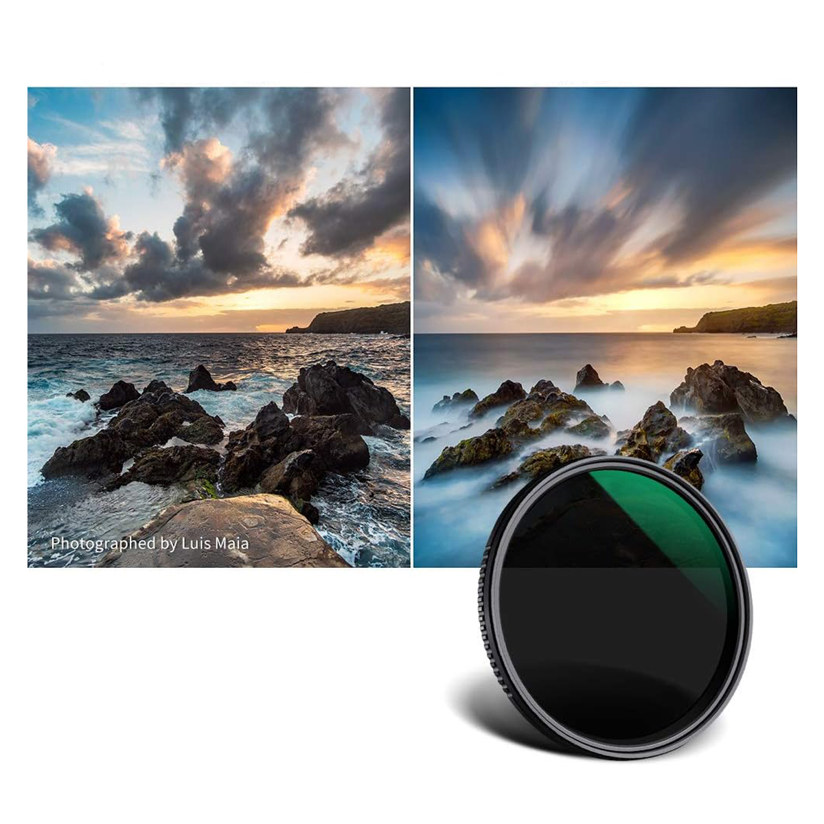 Este filtro de densidade neutra variável ND8-ND2000 tem uma faixa de fator de filtro de 0,9 a 3,3, proporcionando uma redução de exposição de 3 a 11 pontos. Ele pode ajudar a adicionar desfoque de movimento e reduzir a profundidade de campo ao capturar imagens estáticas, e selecionar uma taxa de quadros adequada ao gravar vídeos.
