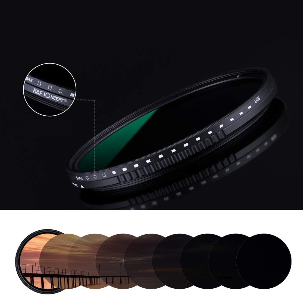 Este filtro ND variável Nano-D de 3 a 11 pontos com revestimento multirresistente da KF Concept é um filtro de densidade neutra variável de 49 mm que fornece uma redução de luz ajustável de 3 a 11 pontos. Ele escurece toda a área da imagem uniformemente, permitindo que uma fotografia seja feita com uma velocidade de obturador mais lenta ou uma abertura maior sem superexpor a imagem. Diminuir a velocidade do obturador aumenta a exposição, possibilitando aumentar o desfoque da imagem para enfatizar o movimento, como ao fotografar água corrente. Alternativamente, ao aumentar a abertura, fornece um controle mais fino sobre a profundidade de campo, útil ao tentar isolar o assunto. Este filtro ajustável é especialmente útil ao fotografar paisagens e em condições de luz muito brilhantes, e é útil para imagens estáticas e de vídeo.