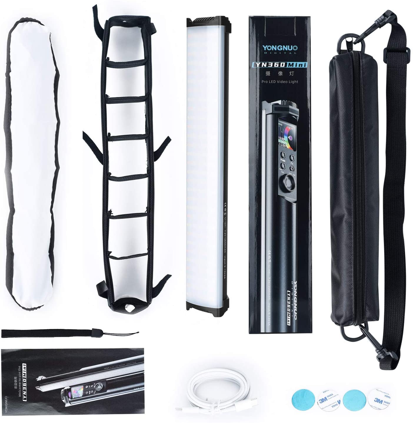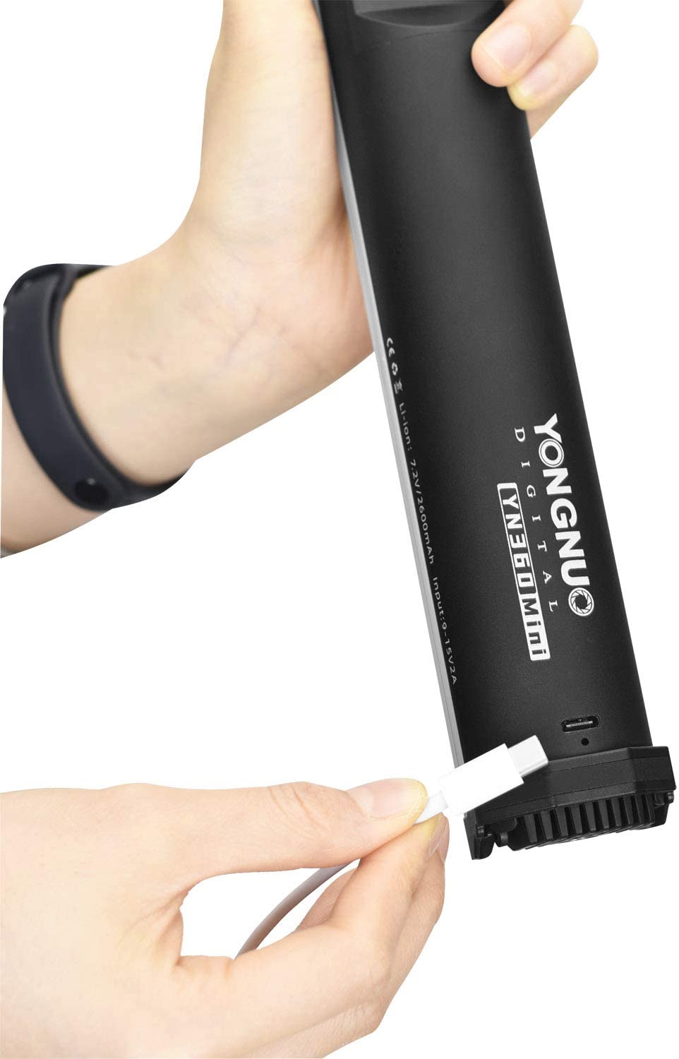 – YN360 Mini é realmente moderno e tem um visual bacana na fotografia. Possui bateria interna de 7,2 V / 2600 mAh, saída potente de 10 W com potência máxima de 1,66 horas, a vida útil da bateria é mais brilhante e mais longa. Ele suporta carregamento rápido Type-C PD 、 QC, que pode carregar até 80% do nível da bateria em 1 hora, e também suporta carregamento durante o uso.
