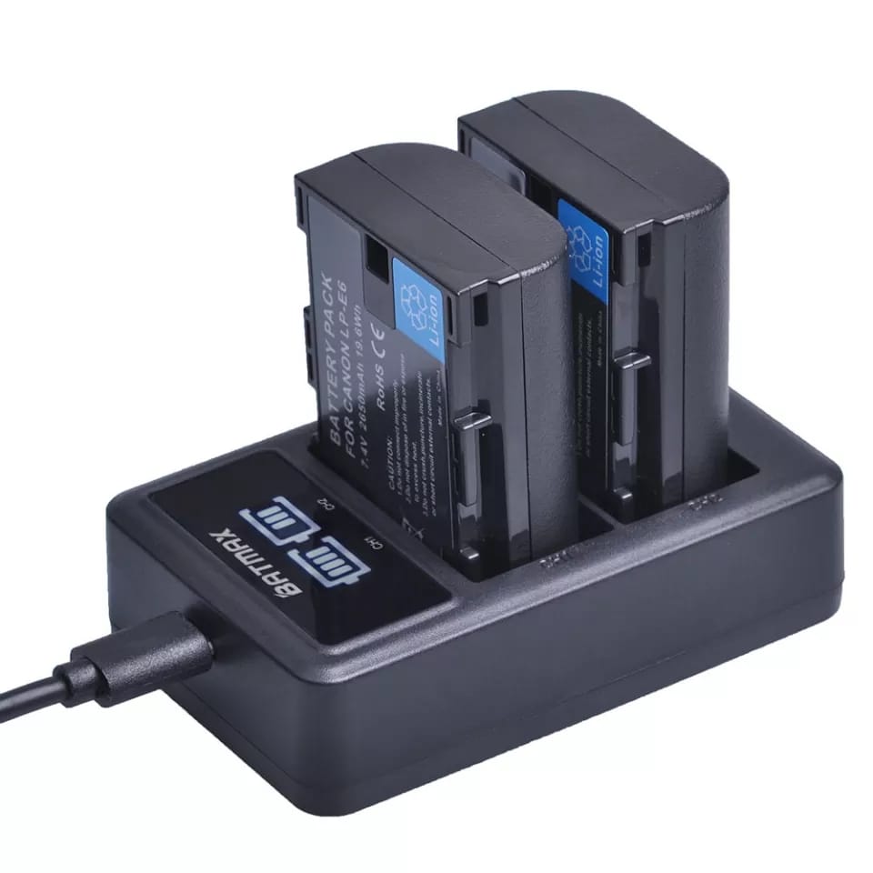 Kit 2 Bateria Batmax Lp-e6 Com Carregador Duplo