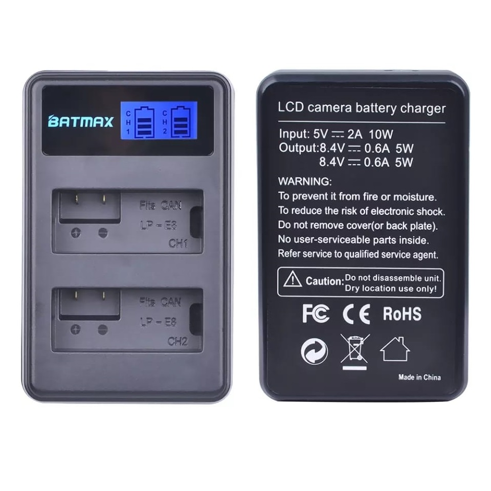 Kit 3 Bateria Batmax Lp-e8 Com Carregador Duplo