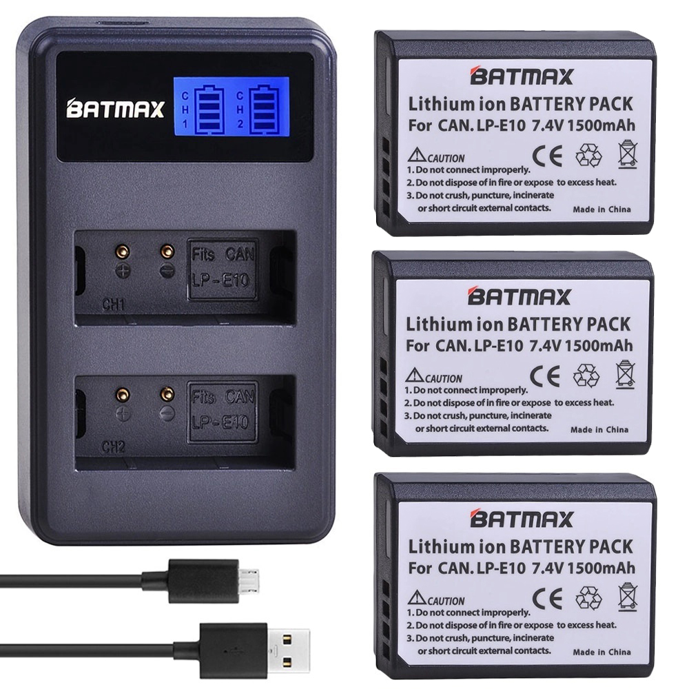 Kit 3 Bateria LP-E10 Batmax Com Carregador Duplo