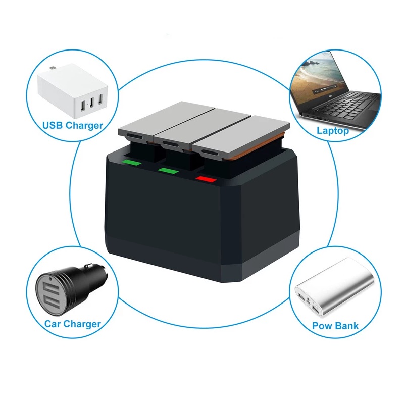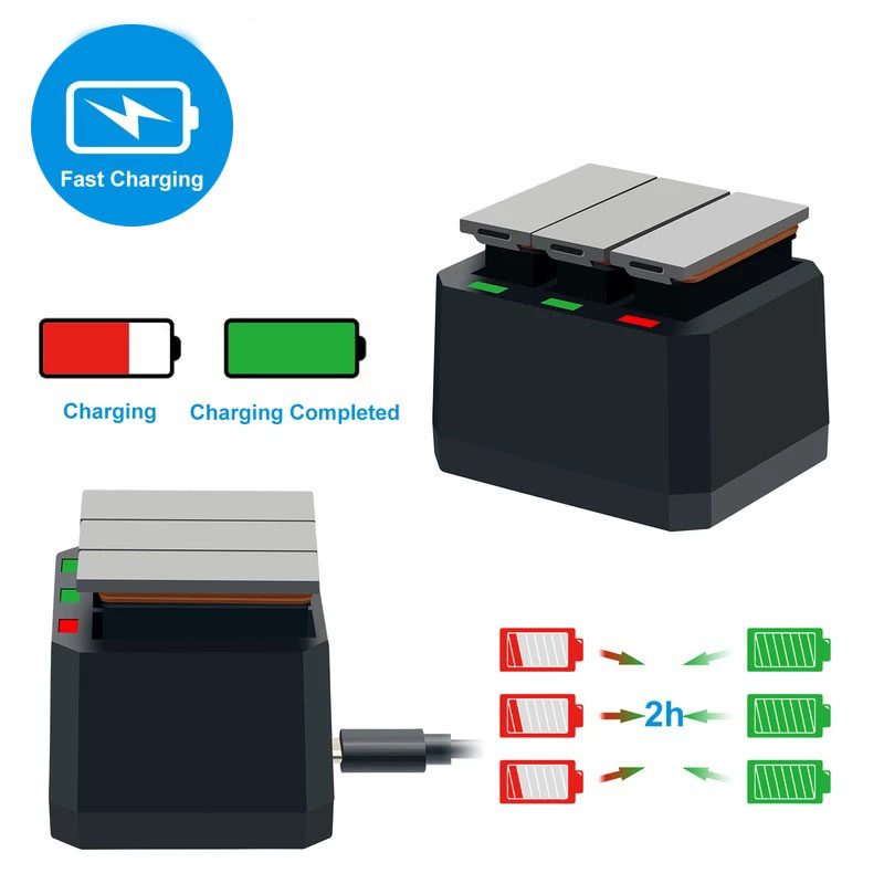 Kit 4 Bateria + Carregador Triplo Para Dji Osmo Action Ab1