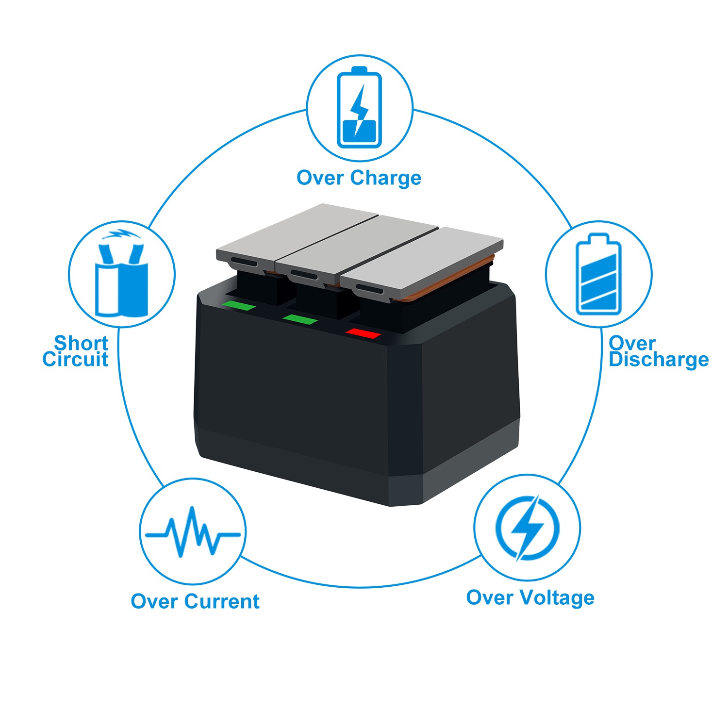 Proteção contra superaquecimento e proteção contra sobrecarga.