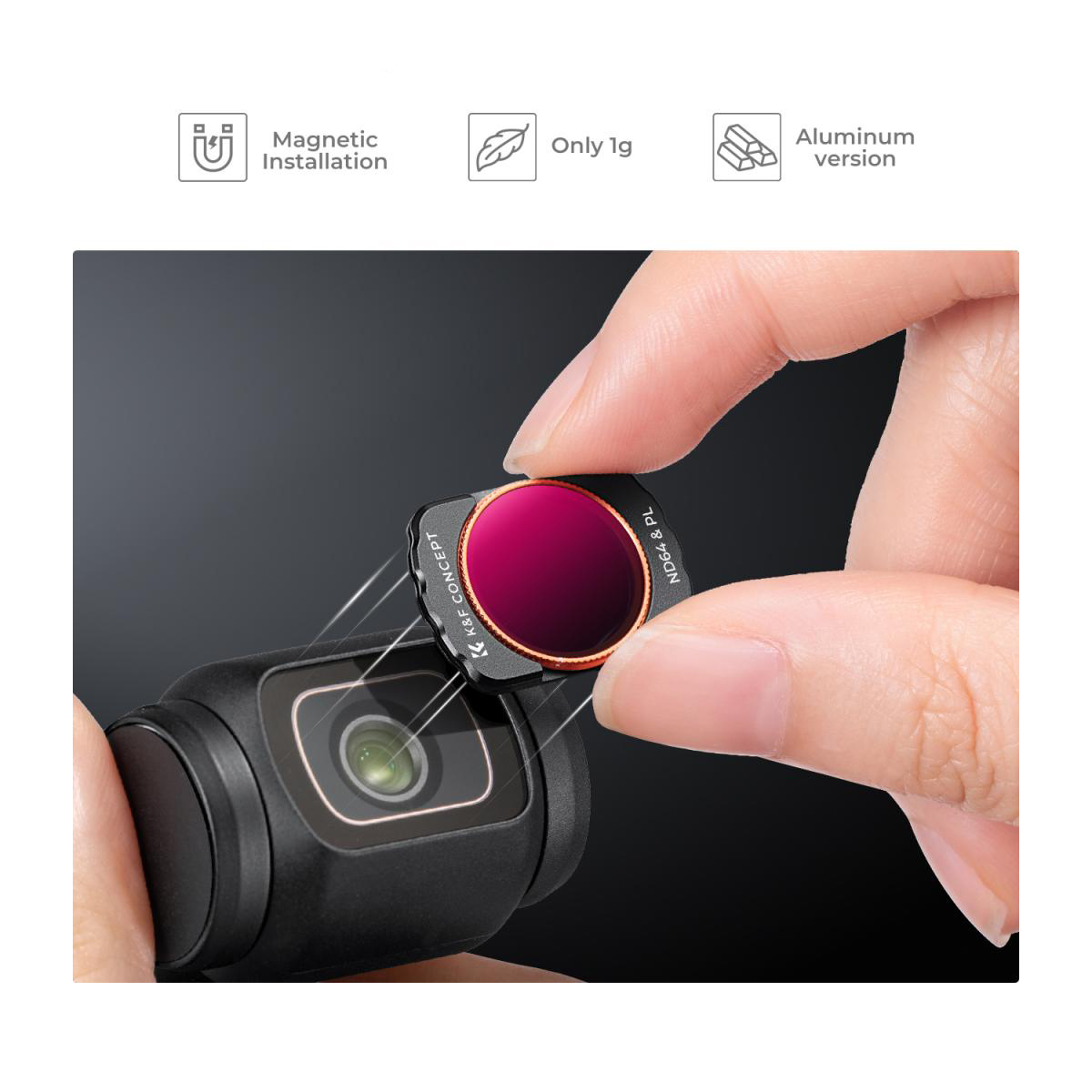 Com o sistema magnético, o filtro pode ser instalado na lente Osmo Pocket 3 com muita rapidez e facilidade, design ultrafino, corrige o problema de filtros originais que obstruem o bloqueio da câmera.