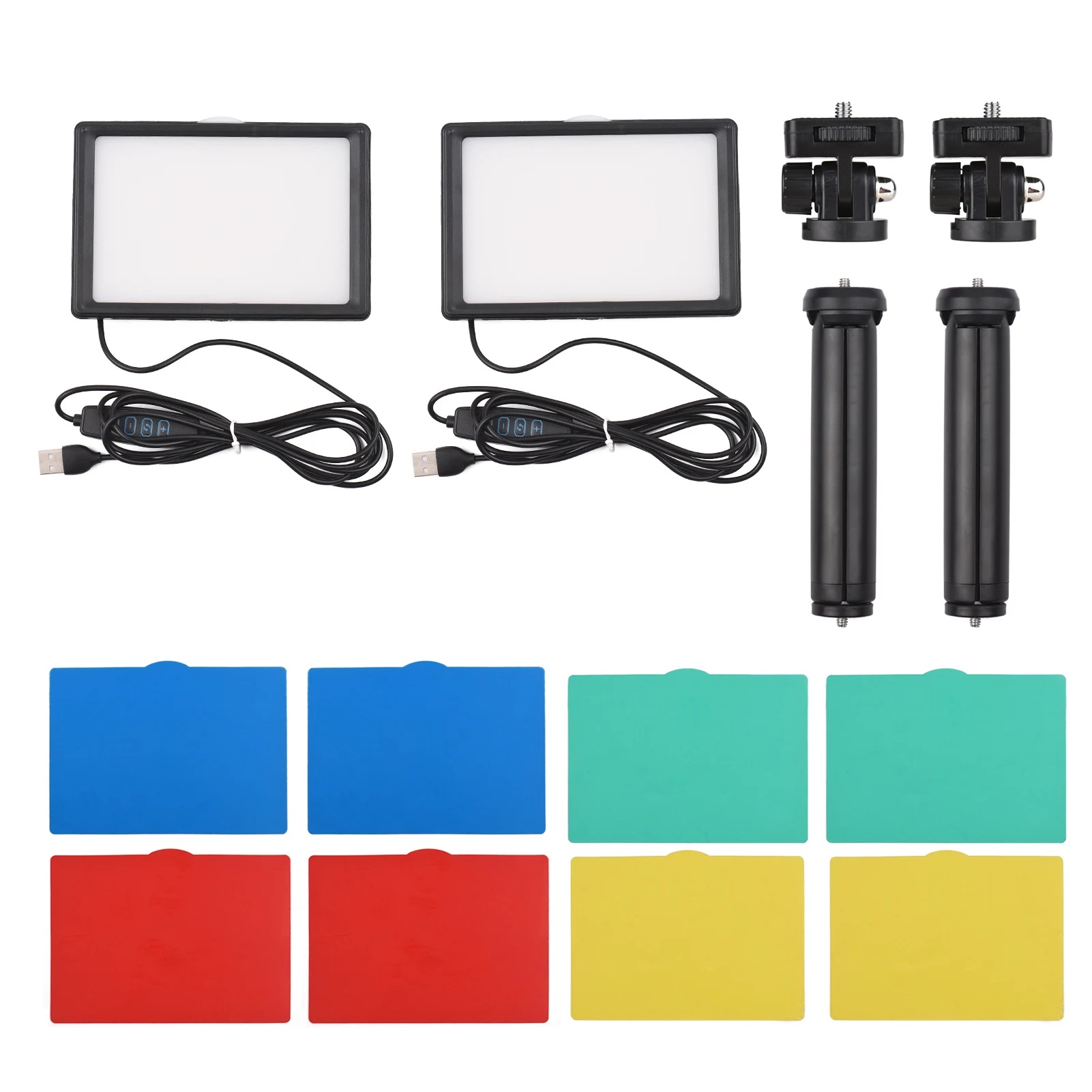 Temperatura bicolor ajustável 3200-5500K, 10 níveis de brilho ajustável, vem com filtros de cor vermelhos, azuis, verdes e amarelos, satisfazendo suas várias necessidades de efeitos de iluminação em diferentes ocasiões como transmissão ao vivo, selfie, videoconferência, filmagem, fotografia de produto, etc.
