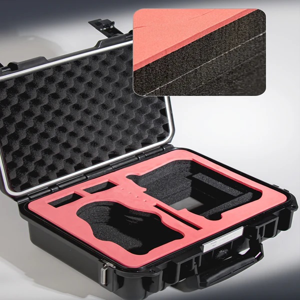 Fabricada em material rígido de alta resistência, a R102 conta com interior em espuma moldada sob medida, que acomoda com precisão o drone, controle remoto, baterias inteligentes, filtros, cartões de memória, joystick e demais acessórios. Seu design compacto facilita o transporte, sem abrir mão da segurança.