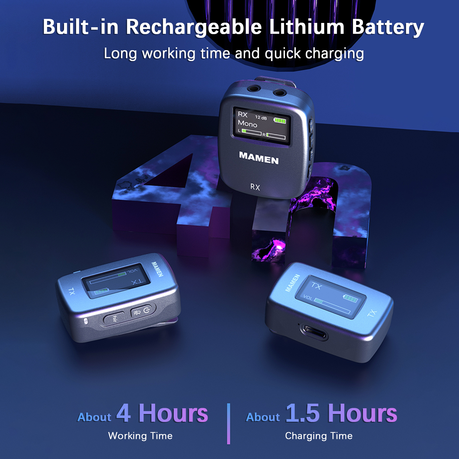 Ambos e o receptor possuem baterias de lítio recarregáveis embutidas que podem funcionar por cerca de 4 horas após serem totalmente carregadas. Os usuários podem e receptor ao mesmo tempo através do cabo de carregamento incluído.