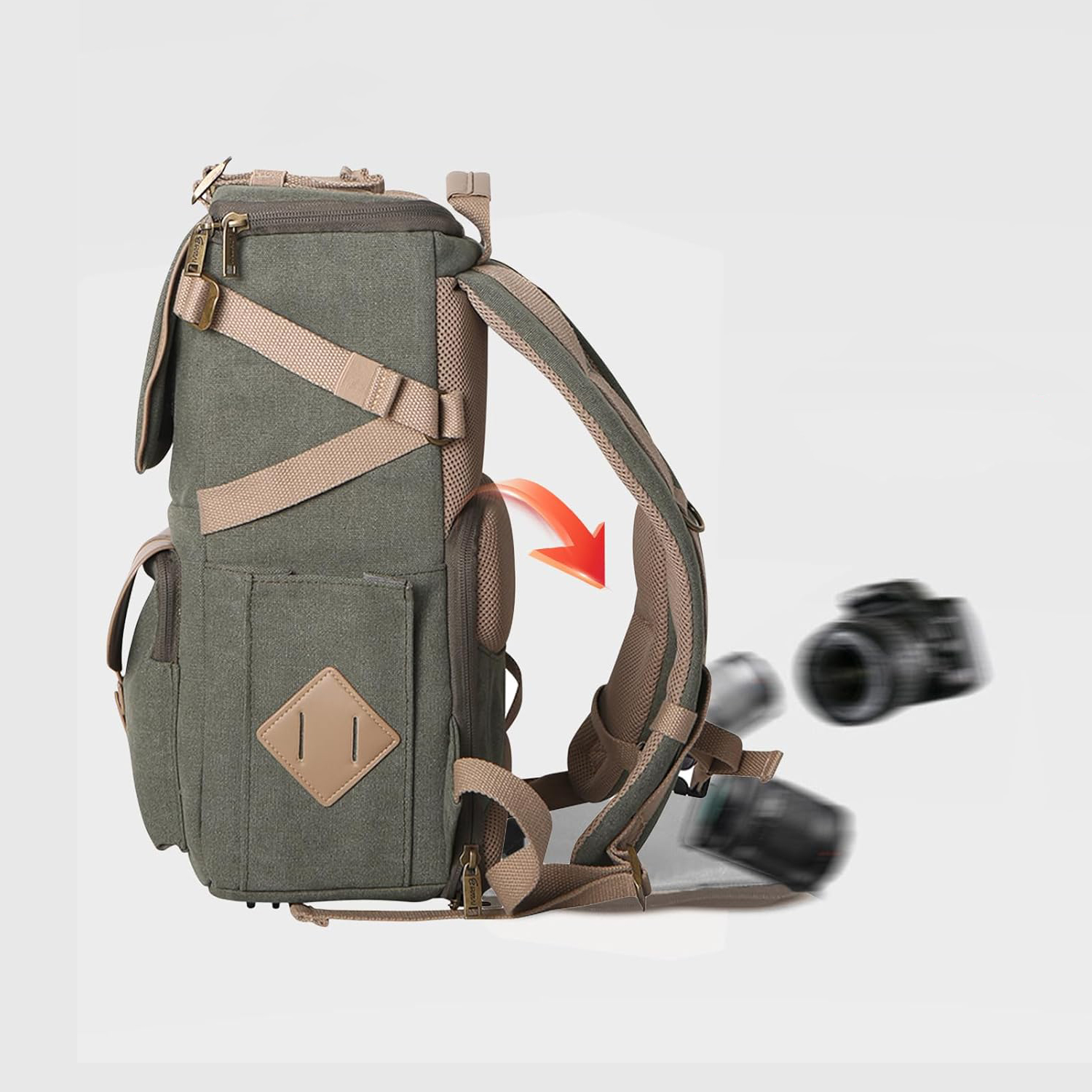 – Capacidade para 1 DSLR, 4 lentes e acessórios