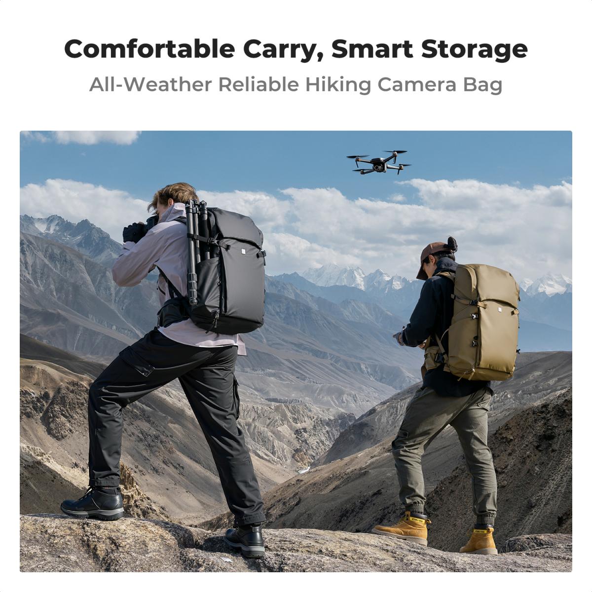 Esta mochila de 40L comporta 2 câmeras e 6 lentes, compatível com câmeras DSLR/SLR Sony/Canon/Nikon/DJI.