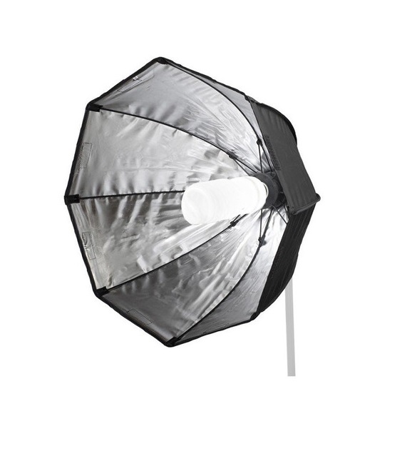 Softbox octagonal de 55 centímetros acompanha soquete, difusor e grid.