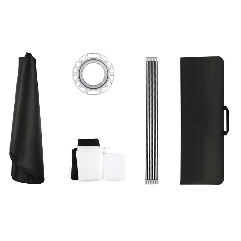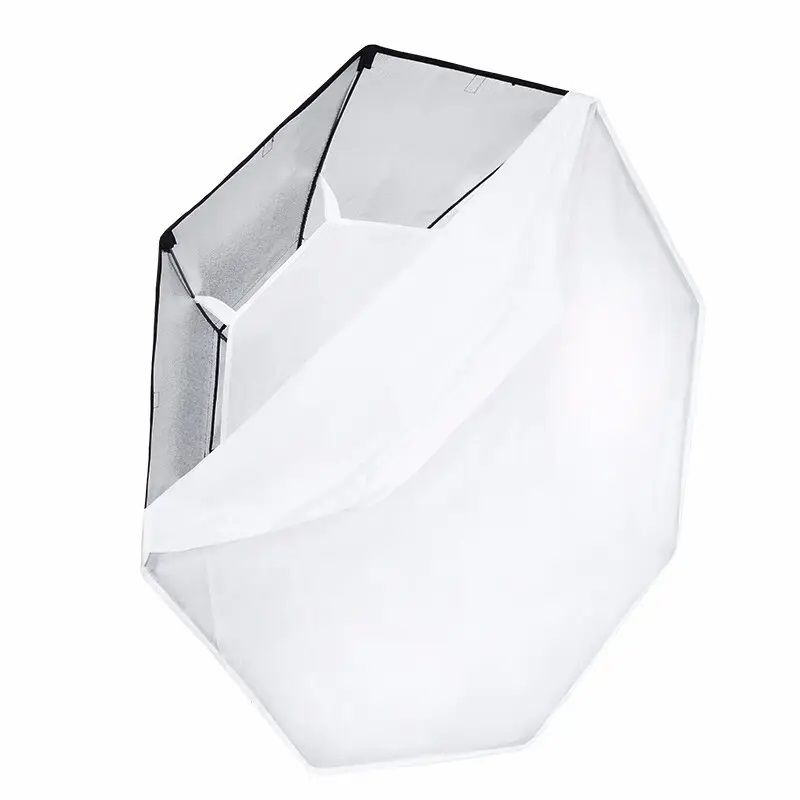– Interior com reflexo prateado e vem com difusor translúcido frontal, ótimo para speedlite, monolight, estroboscópio ou escravo.