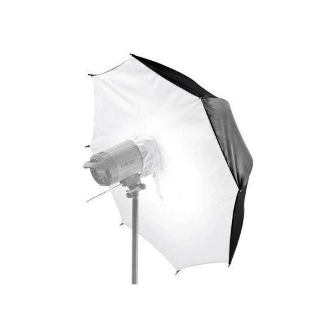 A utilização como Sombrinha Softbox necessita de uma iluminação irá refletir na estrutura metalizada e dispersará a luz pelo tecido difusor branco, possibilitando uma luz difusa extremamente suave.