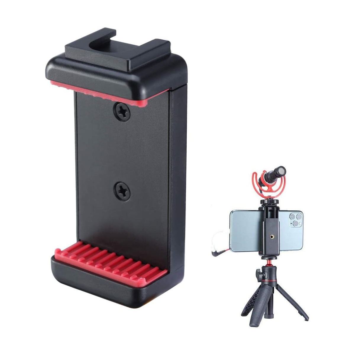 Suporte ajustável para telefone: O suporte para telefone é compatível com a maioria dos smartphones do mercado de 6,6 cm a 9,4 cm de largura e com uma montagem de sapata fria para instalação de microfone.
