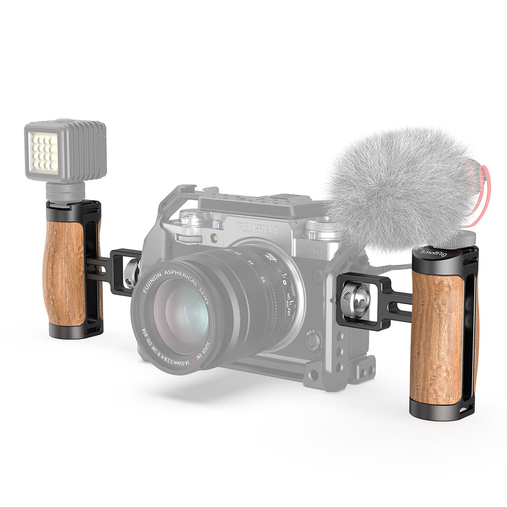 A Mini Alça Lateral de Madeira SmallRig (Montagem Estilo ARRI) 2914 foi projetada para câmeras digitais sem espelho e outros usuários de câmeras pequenas. Um parafuso ARRI 3/8″-16 com dois pinos de localização é fixado na lateral da Gaiola. O flash e o microfone podem ser montados através da sapata fria, e a pulseira, como 2456, pode ser montada através do orifício do ilhó para evitar que a câmera caia acidentalmente. Altamente ajustável para caber em diferentes alturas de gaiola e suportar a troca rápida de canhoto para destro através da chave embutida. Compatível com SmallRig Cages 2168. Feito de liga de alumínio e jacarandá com design ergonômico, a alça portátil oferece aos cineastas uma experiência de filmagem suave e confortável.
