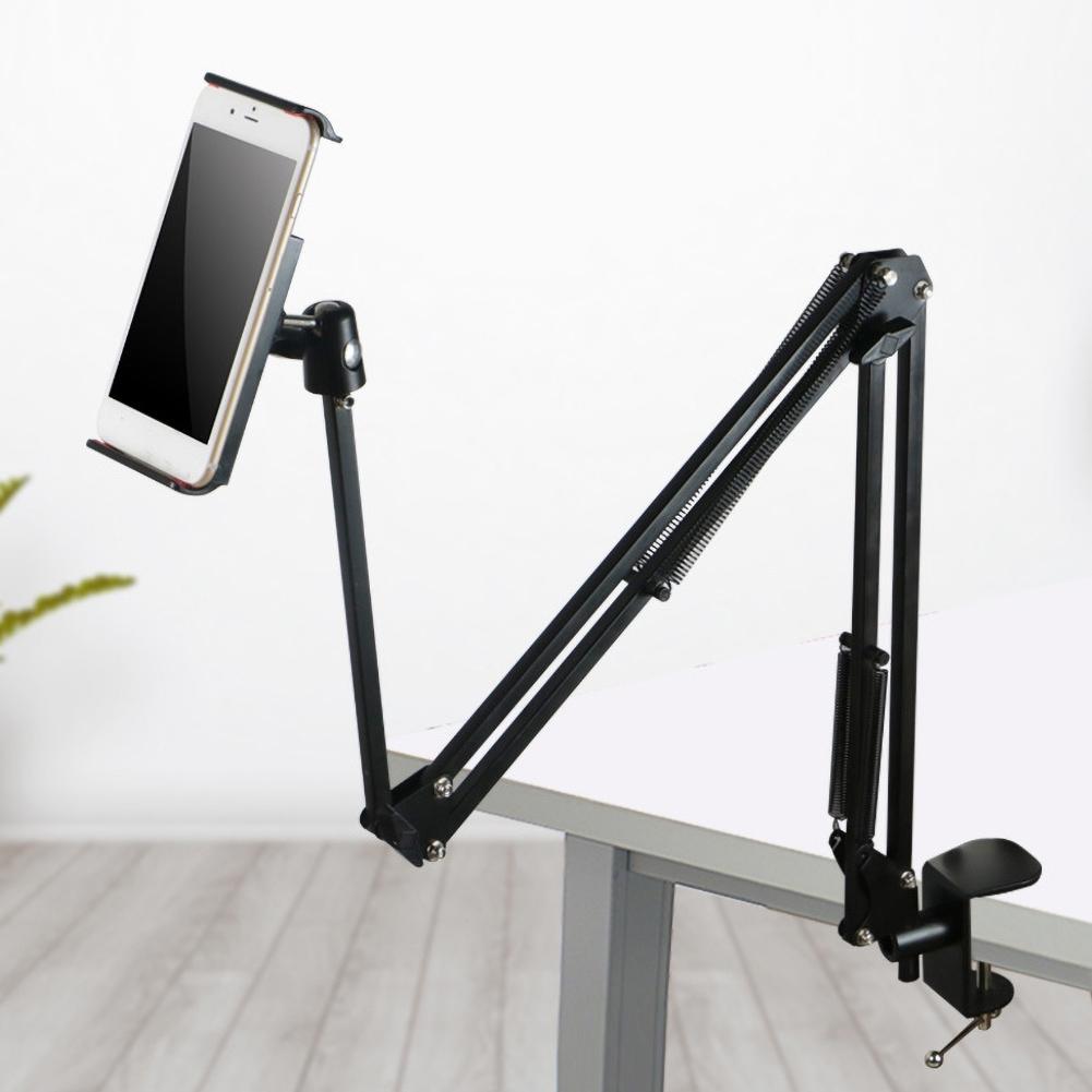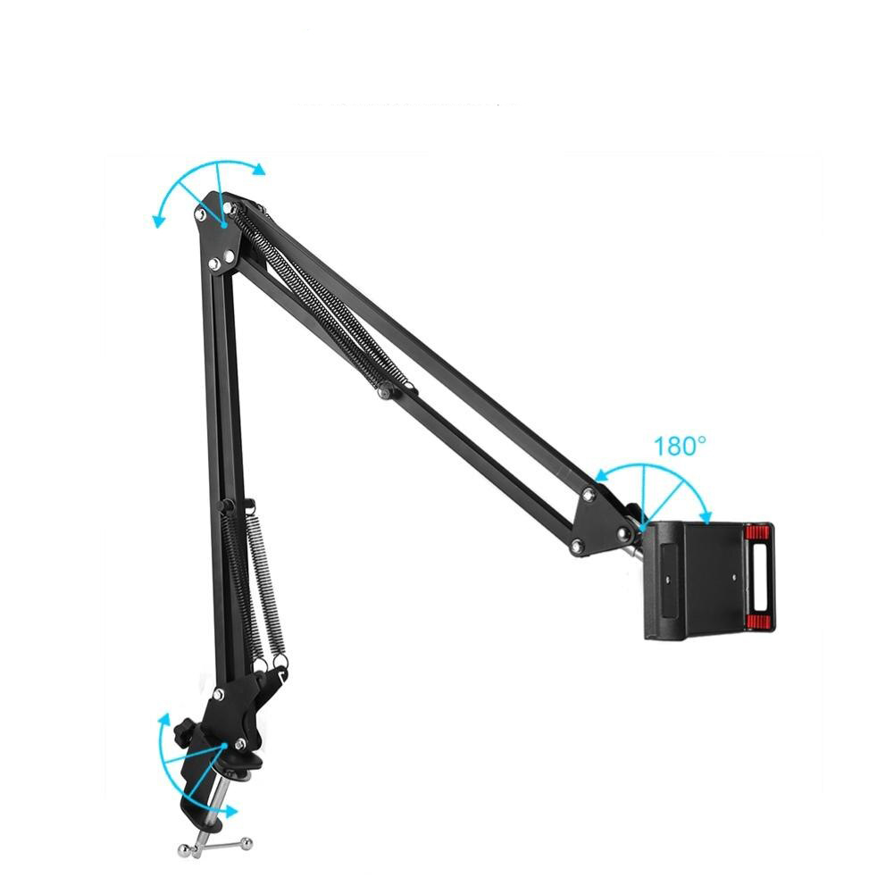 Este braço longo tem um suporte giratório para telefone ou microfone e dois braços ajustáveis de 180 graus, que é fácil de colocar um celular, tablet ou microfone.