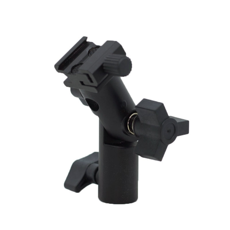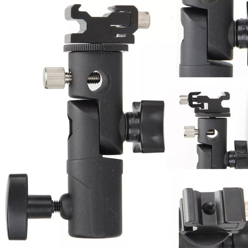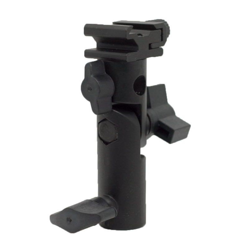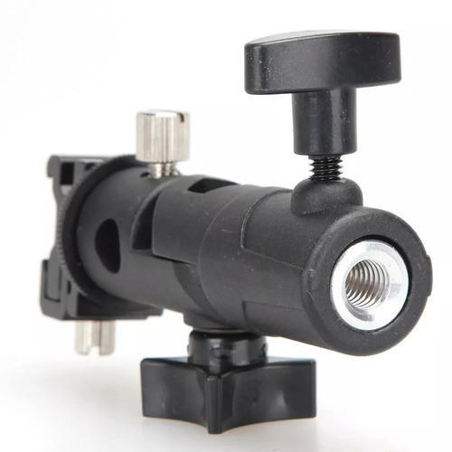 Este suporte oferece controle total sobre o posicionamento do flash e da sombrinha. Feito em metal, combinado com plástico resistente este modelo de suporte garante muito mais estabilidade e segurança ao seu equipamento. Fixação universal compatível com qualquer modelo de flash speedlite. Simples de montar e desmontar possui cabeça articulada para a montagem dos equipamentos no ângulo ideal para tirar suas fotos.