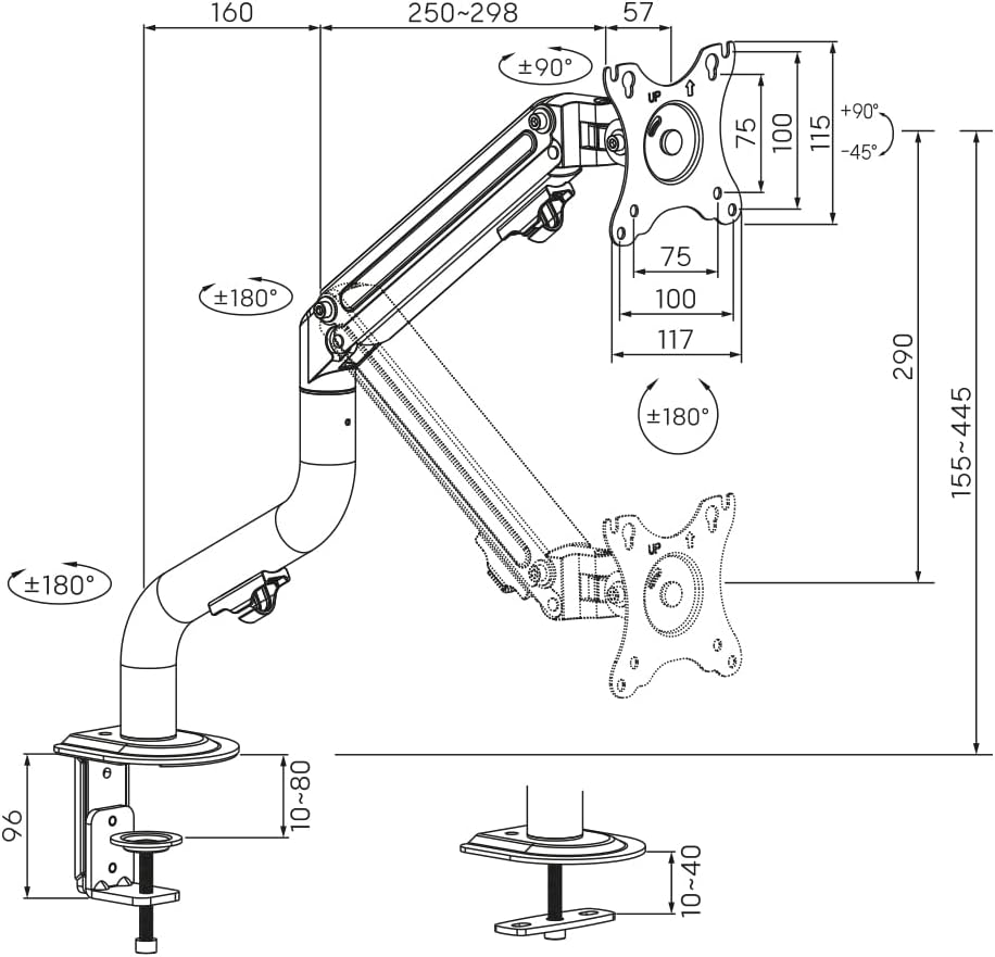 Desenvolvido por engenheiros, o seu moderno sistema de mola permite ajustar livremente monitores de 17″ a 34″ (com peso entre 2 e 8kg), sem a necessidade de ferramentas.