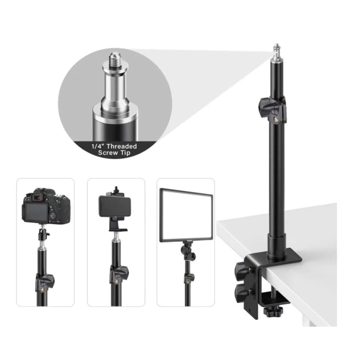 Suporte de mesa para mesa c braçadeira montagem de mesa suporte de mesa ajustável alumínio para câmera dslr luz painel de vídeo luz microfone tripé