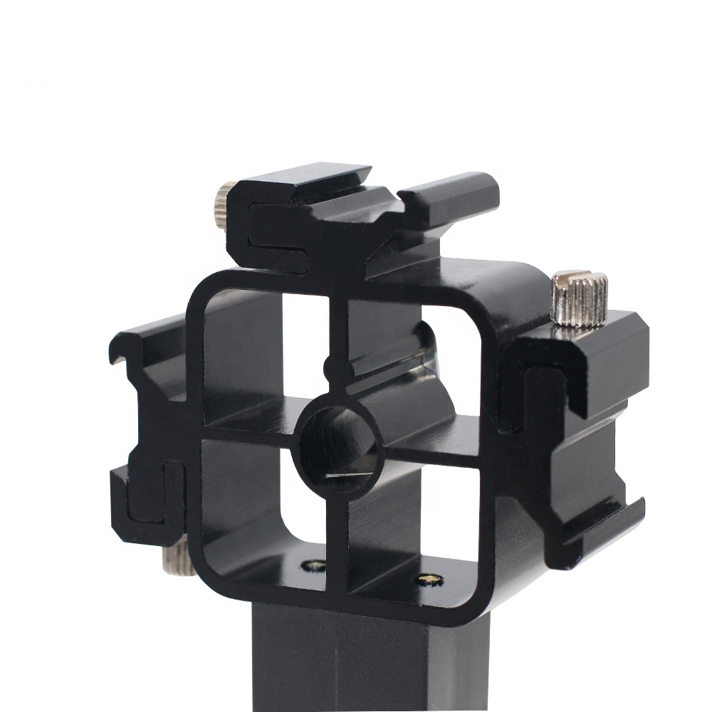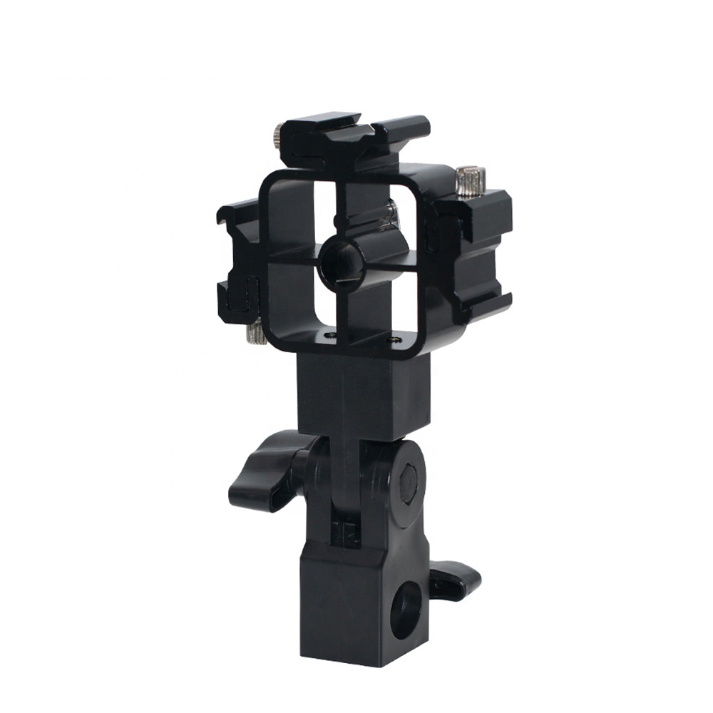– Com três sapata de metal regulável independente, pode suportar diferentes tipos de flash profissional.