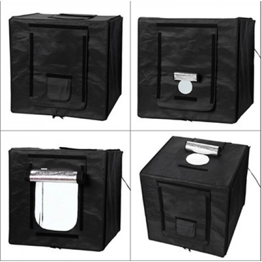 É um mini estúdio portátil ideal para fotografar objetos pequenos e médios para catálogos de revistas e web sites.