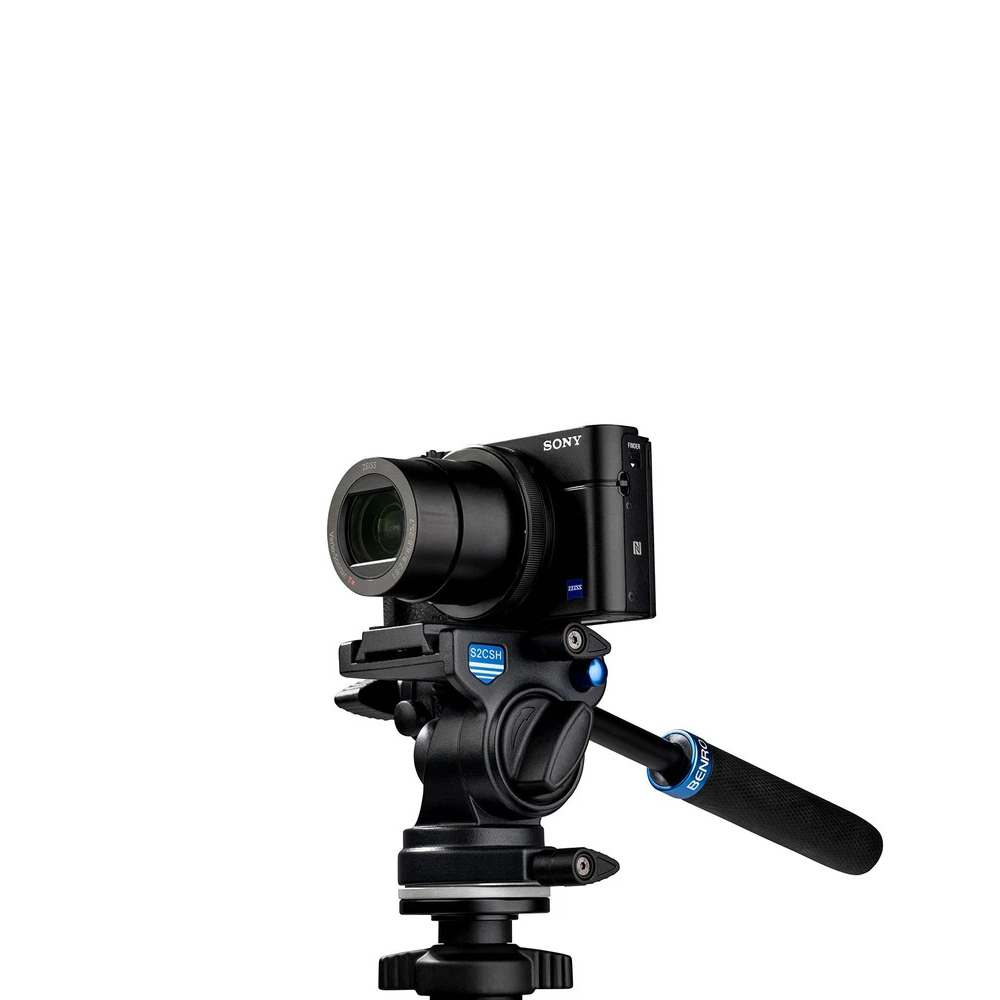 O grande destaque é a cabeça de vídeo S2CSH, que oferece movimentos fluidos de pan (360°) e tilt, com barra de controle ajustável, permitindo gravações mais suaves e estáveis.