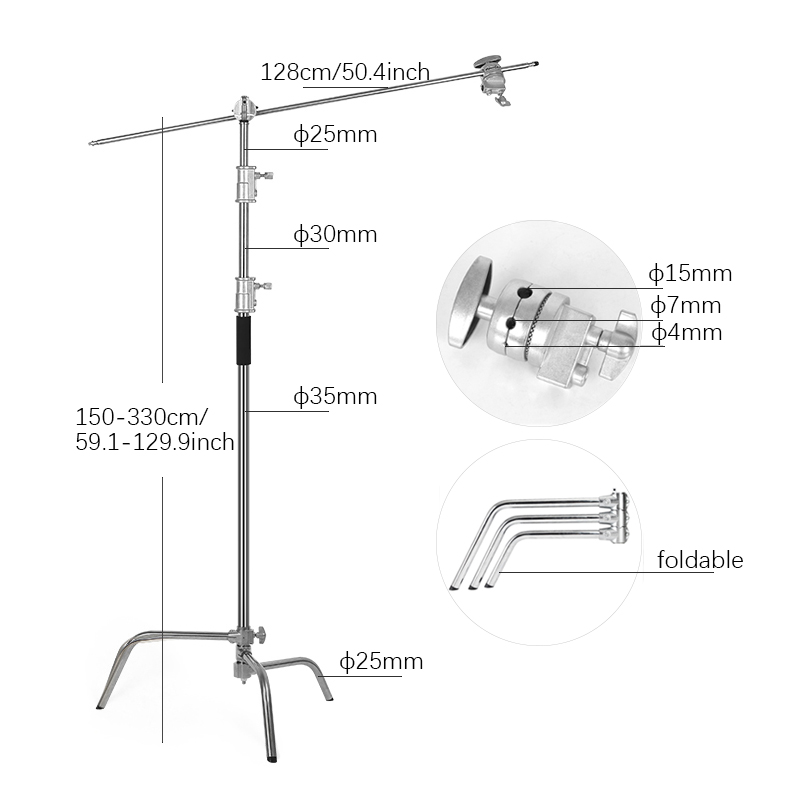 Projetado para suportar equipamentos como softboxes, rebatedores, iluminadores LED e flashes, o CS-330 proporciona maior liberdade na criação de luzes direcionadas e criativas, sendo perfeito para retratos, vídeos, fotos de produto e muito mais.