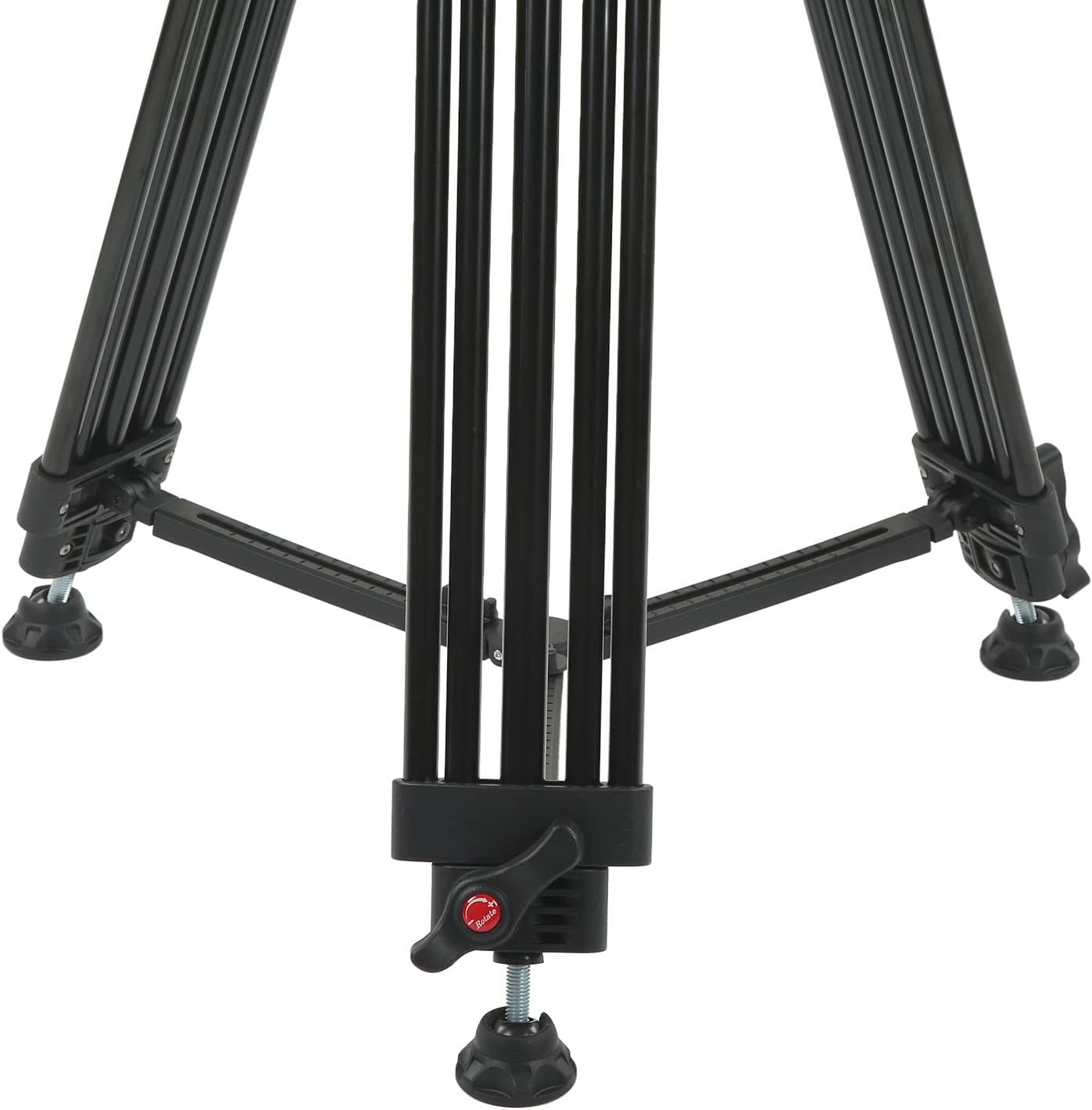 A base deste tripé são pés circulares de borracha, com tornozelos giratórios flexíveis, permitindo que as pernas fiquem firmes independentemente de terreno plano, acidentado ou inclinado.