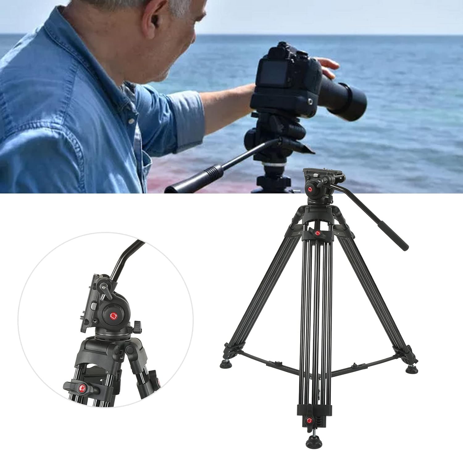 Sua cabeça de óleo também possui um modo básico de auto equilíbrio horizontal, ajudando os usuários a não perderem muito tempo ajustando quando precisam girar em um ângulo horizontal normal. Quando precisar ajustar o ângulo de rotação para cima ou para baixo, você pode girar a trava de travamento para fixá-lo. Então, quando a trava for aberta, a cabeça de óleo será reequilibrada de forma automática e suave