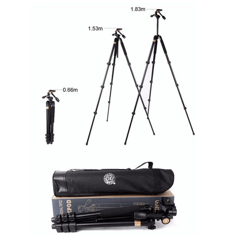 O Tripé Profissional Q620 com Cabeça Panorâmica 3 Vias Alumínio até 8kg é ideal para Fotografia Filmagens e Transmissões é um tripé pequeno e portátil feito em liga de alumínio de alta qualidadepara maior estabilidade estrutural possui uma altura máxima de uso de 180cm (1.8m) e mínima de 50cm.
