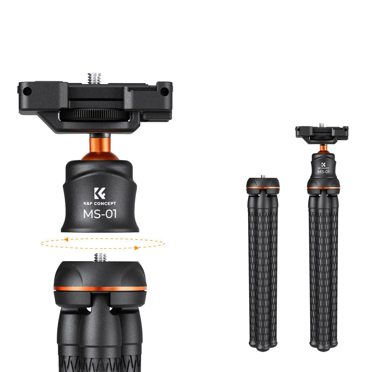 Esta cabeça de tripé suporta uma carga de 3kg e é adequada para a maioria das câmeras sem espelho, telefones celulares e outros equipamentos. Ele pesa apenas 0,32 kg e é fácil de transportar, adequado para viagens e fotos ao ar livre.